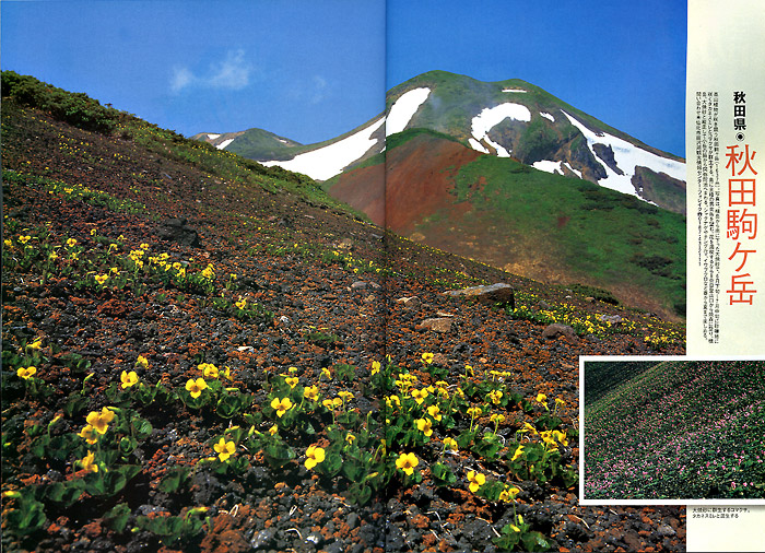 森吉山、秋田駒ヶ岳、鳥海山の花の群落地を紹介させていただいております。