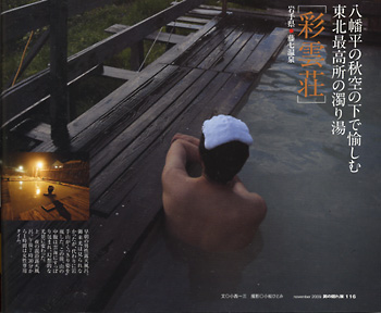 特集記事『山の一軒宿へ。』の取材で、岩手県・藤七温泉「彩雲荘」へ行ってきました。文は、おなじみコンビの小西一三さんです。ぜひご覧ください。